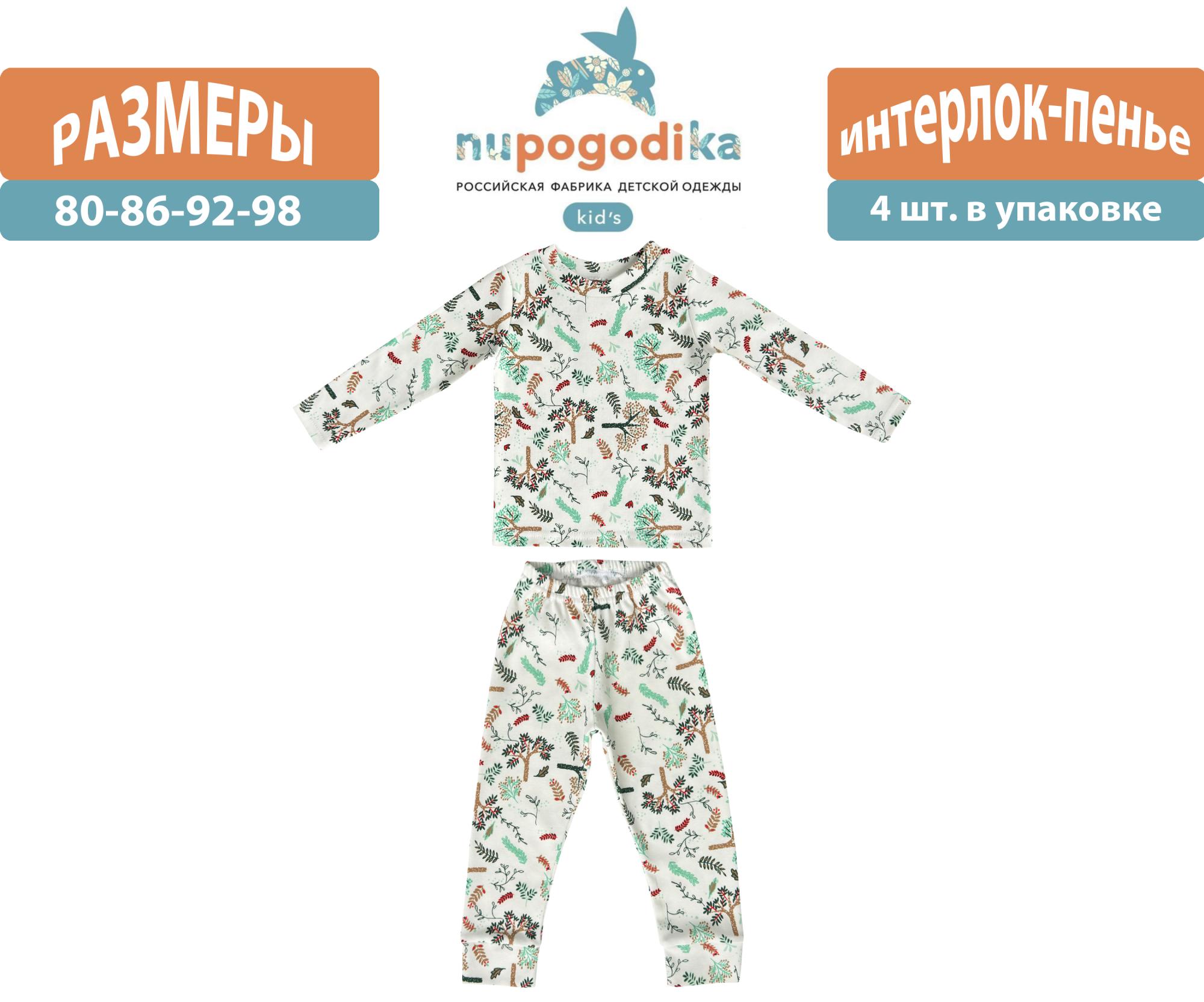 Пижама с брюками (Интерлок пенье) Веточки бирюзовые (размеры 80/86/92/98)