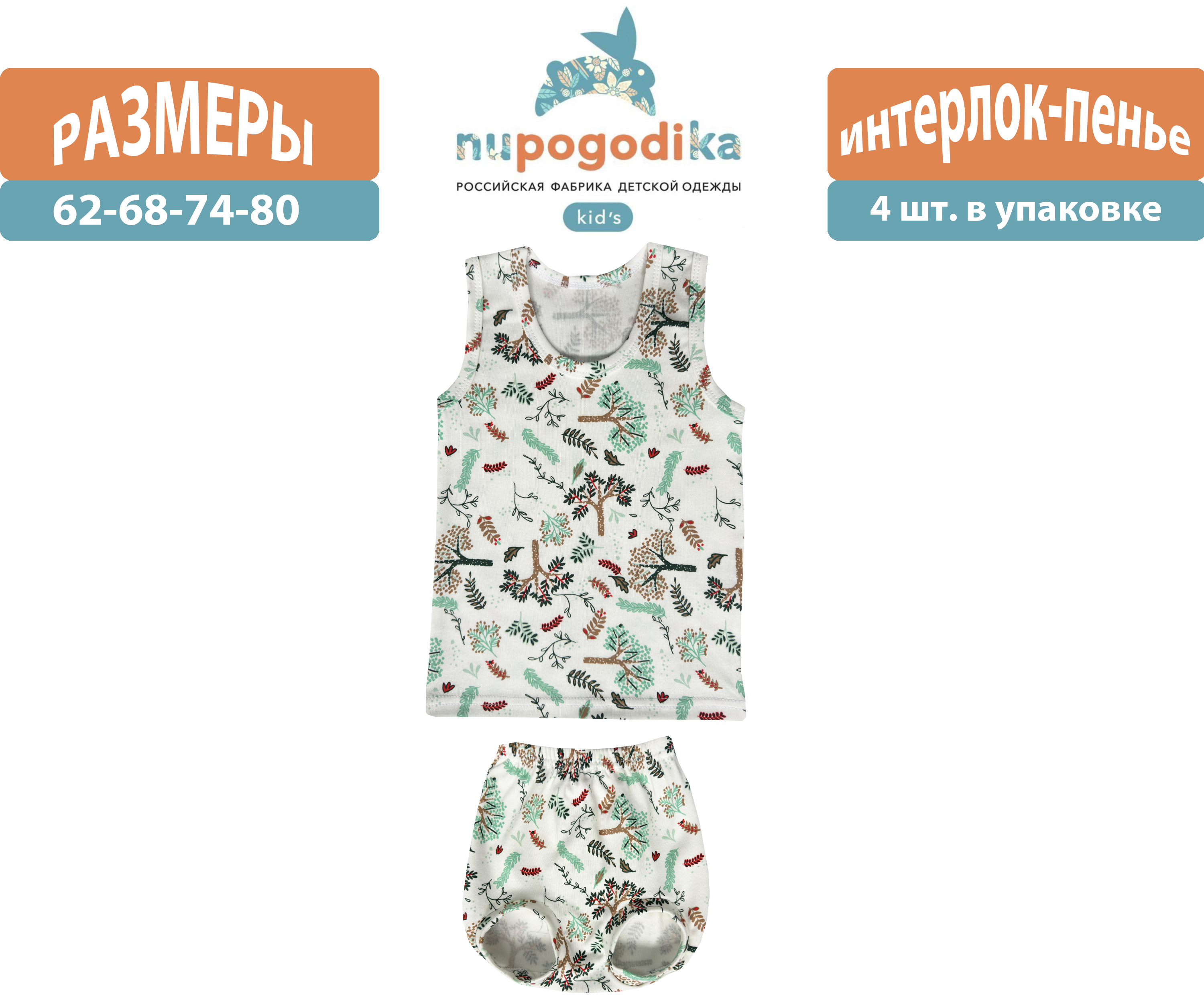 Майка + трусы (Интерлок пенье) Веточки бирюзовые (размеры 62/68/74/80)